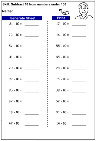 Are you ready to try another problem that involves subtracting by 10? Practice adding and subtracting the number 10 with flocabulary's educational rap song and lesson plan. Practice math problems like subtract 1 from a number. There you go, hope that . Here you will find our selection of free subtraction to 10 worksheets, subtraction facts, kindergarten math worksheets & homeschool math sheets for kids by .